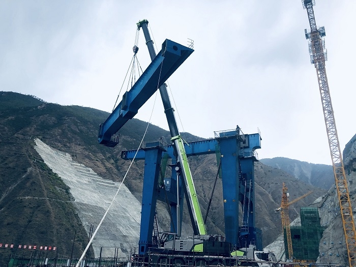 楊房溝水電站進水口門機主梁順利吊裝完成