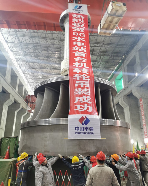 DG水電站首臺機(jī)組轉(zhuǎn)輪及水輪機(jī)軸吊裝就位