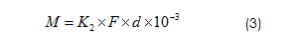 (3)式中:K2是擰緊力矩系數(shù);F表示為預(yù)緊力,F(xiàn)為式(1)計(jì)算得到的;d為螺紋公稱直徑。